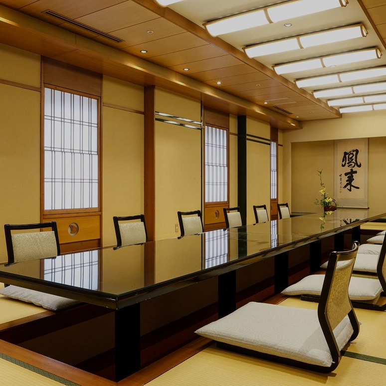 賑わいの日に話が弾み、集う心に時を忘れて、宴を心ゆくまでご堪能いただけます。掘りこたつスタイルですので、長い時間でも疲れずのんびりとお寛ぎ頂けます。法要、慶事、歓送迎会など様々な用途でご利用頂けます。