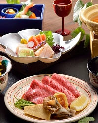 季節の会席、三田牛の鉄板焼き付会席、海の幸彩会席からお選び頂けます。