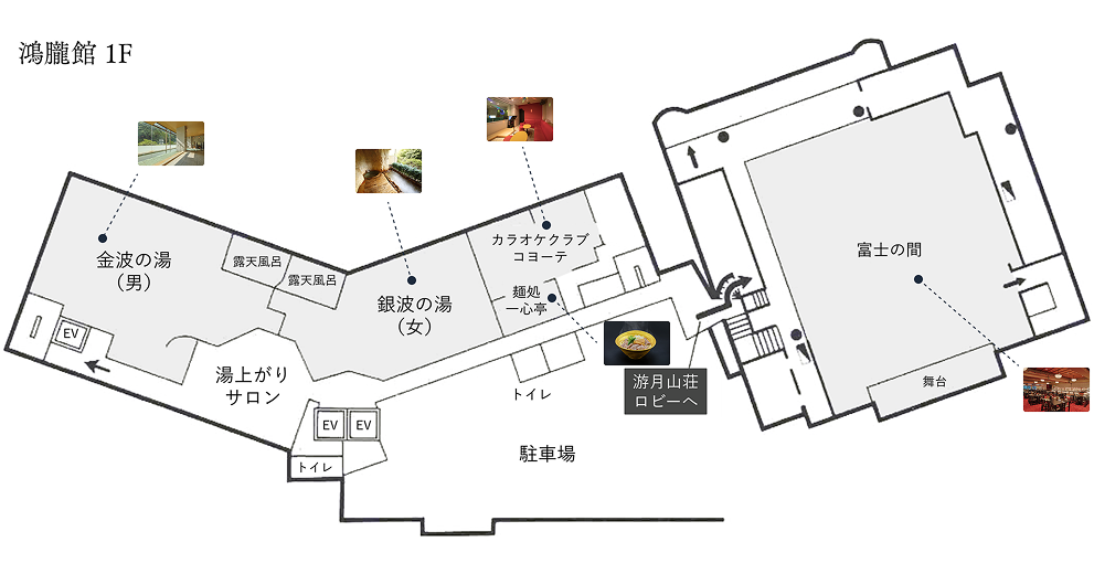 游月山荘には、くつろぎと癒しに満ちた館内施設が揃っております。贅沢な休日にそっと彩りを添え、心に残るひとときをお過ごしください。