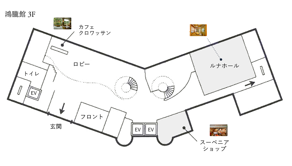 鴻朧館の館内には、落葉山の絶景を眺めながら過ごせるラウンジやスパ、大浴場など、上質なくつろぎを提供する施設が揃っています。滞在のひとときが、心豊かな思い出となりますように。