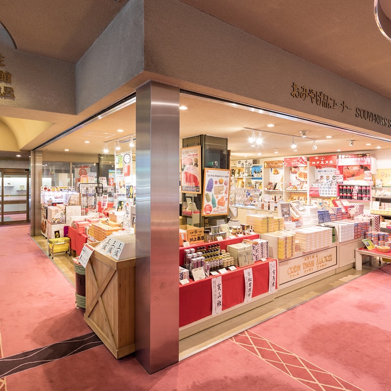 有馬名産品である、炭酸せんべい・有馬筆をはじめ様々なお土産をご用意して皆様のお越しをお待ちしております。
