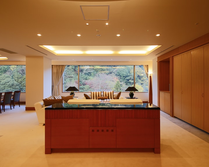 有馬温泉 月光園 鴻朧館の最上階に位置する、1室限定の貴賓室。有馬でも稀な、自然の景色に包まれた空間で、極上の贅沢をご体験ください。